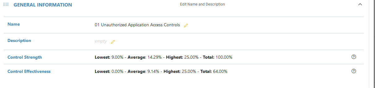 Each Rating can be edited on Risk Sub-Controls, which will in turn affect a Category’s total effectiveness. This can be seen in the details of each Category: