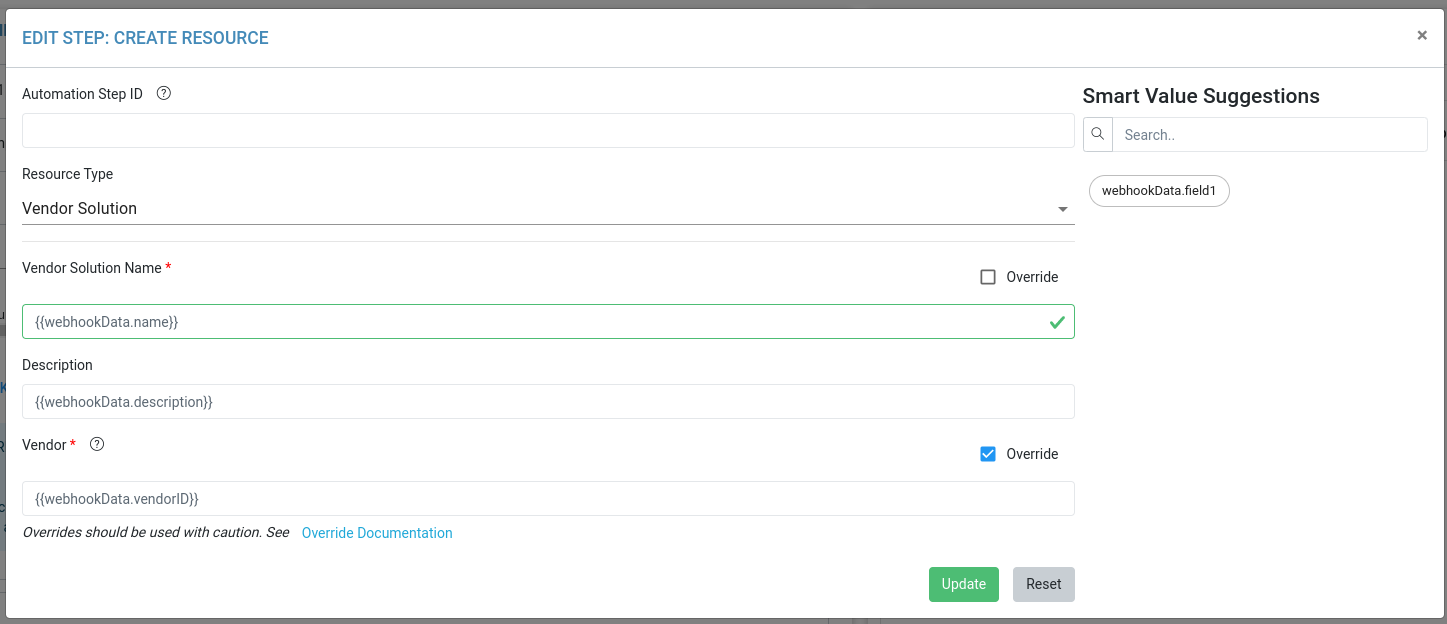 A smart value is a one or multiple dot separated words included in double curly braces. For example: {{webhookData.threatID}} could reference a piece of information passed during a Webhook call.