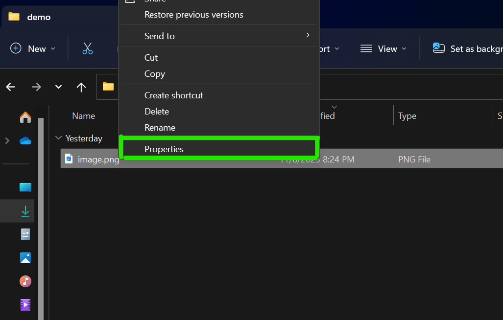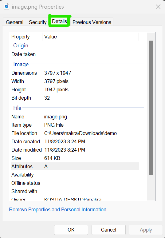 Right click on an image file in file explorer and press “properties”