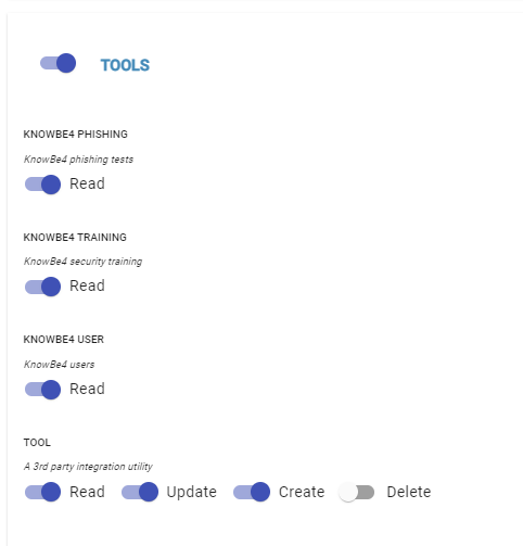 ‘KnowBe4 Phishing’, ‘KnowBe4 Training’, and ‘KnowBe4 User’ Read permission enabled