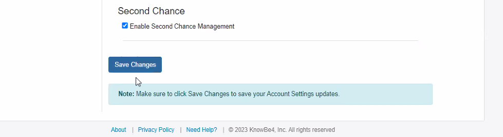 Make sure to press ‘Save Changes’ at the bottom of the KnowBe4 Configuration page.